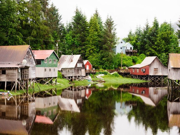 Dubbed the Salmon Capital of the World, Ketchikan is the southeastern-most town in Alaska and is home to the world’s largest collection of standing totem poles that are found throughout the city and at four major locations: Saxman Totem Park, Totem Bight State Park, Potlatch Park, and the Totem Heritage Center. Other attractions of Ketchikan are Creek Street, a boardwalk road built on pilings over Ketchikan Creek and the Waterfront Promenade that skirts the bustling shoreline with inviting whale-tail benches to take in the view.