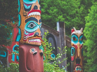 Walk along Ketchikan’s Waterfront Promenade and look for totem poles in the city with the largest collection of totem poles in the world