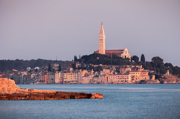 The lovely fishing port of Rovinj on the west coast of the Istrian peninsula bordered on three sides by the Adriatic Sea. You can tour the maze of cobblestone streets that lead to the hilltop St. Euphemia Cathedral with its towering steeple dominating the skyline. Old Town Rovinj is a delightful tangle of medieval streets and twisting stairways. Seek out the Bronze Age ruins of Monkodonja, the hidden beaches or the breathtaking natural beauty of the 6-mile-long Lim Fjord.