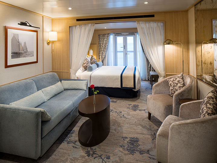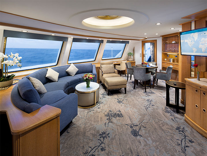 This intimate all-suite yacht features spacious, ocean-view accommodations, each with a walk-in closet and updated double-vanity bathroom. On board, you’ll find a fully equipped fitness center, a spa with complimentary sauna, an infinity pool, two full-service bars, on-deck hot tubs, a water-access marina platform, and so much more.