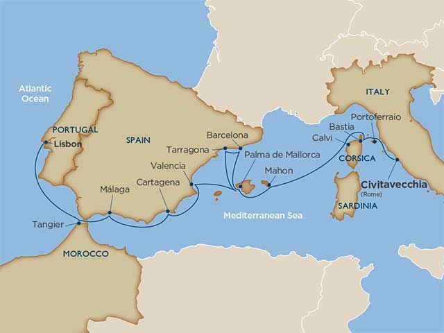 Sip red wines and savor tapas, pastas, rich cheeses and aged hams throughout Portugal, Morocco, Spain, France and Italy. You’ll spend memorable days exploring tiny rustic villages, historic fortified ports and contemporary architecture in Tangier, Ibiza, Barcelona, Calvi, Mahon, Portoferraio, Rome and more. Kayak along the stunning coastline of Mallorca and bike from Portoferraio to Enfola, Elba in Italy.