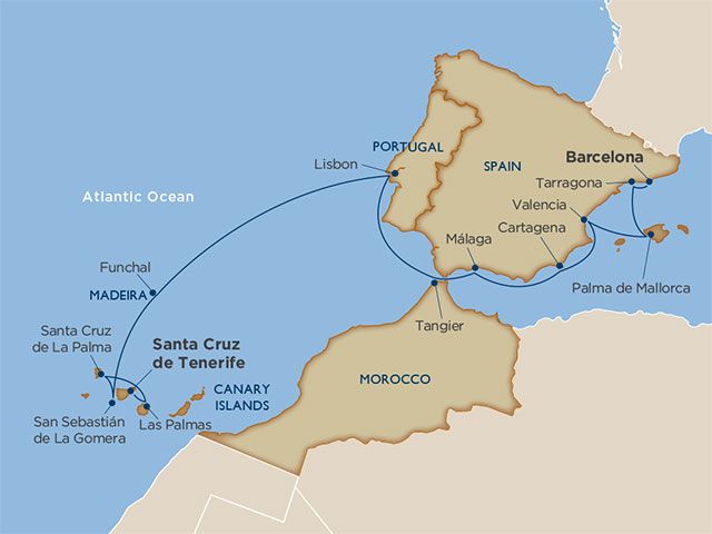 Soak up the sun, savor the beaches, and explore Spanish and Portuguese cultures on this homage to Iberia and the Canary Islands. This cruise offers all the best things rolled into one — Spanish rivieras; the Mediterranean paradise of Palma de Mallorca; iconic cities like Barcelona, Tangier and Lisbon; marvelous Madeira; and a chain of Canary Islands bursting with exotic landscapes, colonial history, and their own distinct brand of Berber-infused culture. Discover marvels like the Alhambra, Gaudí’s Nouveau-Gothic Sagrada Familia, Lisbon’s feast of monuments and azulejo tiles. Learn to cook authentic paella at a Valencian farmhouse, dine on delicious Portuguese bacalhau, and taste Canarian wines born in the shadow of a simmering volcano. You’ll come home filled with wonder at how diverse and delightful Iberia can be.