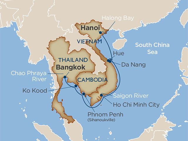 From Hanoi’s storied streets to Southeast Asia’s stunning coastlines, this in-depth Vietnam journey blends culture, history and natural beauty. Spend three unforgettable nights at a 5-star hotel in Hanoi. Delve into the past with a tour of the Ho Chi Minh Mausoleum and Hoa Lo Prison (“The Hanoi “Hilton”). Sip authentic Vietnamese coffee in the Old Quarter. Savor the flavors of Hanoi with a street food tour. Immerse yourself in Vietnam’s artistic heritage with a chance to see a water puppet show and visiting Bat Trang Pottery Village’s centuries-old ceramic craftsmanship. Your voyage by yacht takes you through Halong Bay’s jade-green waters. Visit the lantern-lit charm of Hoi An from Da Nang, and drift along the Saigon River. Experience Cambodia’s serene Mekong River and relax on the pristine beaches of Ko Kood. A scenic cruise along Bangkok’s Chao Phraya River, creates a perfect finale.