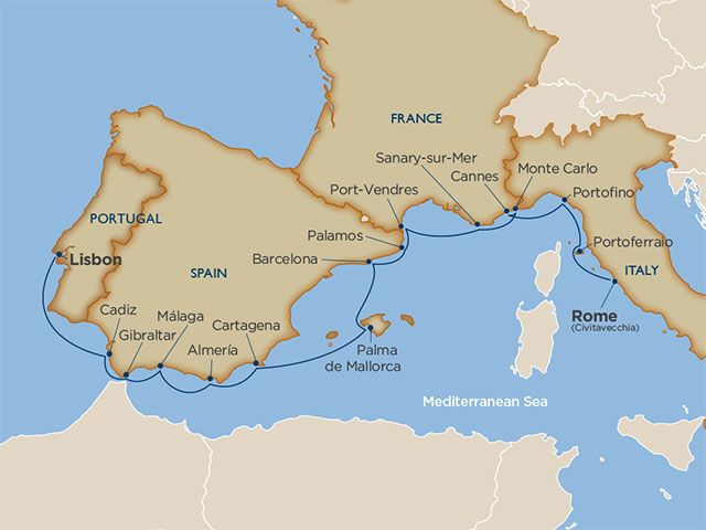 Experience the best Western Mediterranean ports in detail during this cruise through Italy, Monaco, France, Spain, Gibraltar, and Portugal. Stroll among opulent casinos, high-end boutiques, and historic Formula One landmarks in Monte Carlo. Sip wormwood-based absinthe in the French village of Antibes outside of Cannes. Or meander among the dusky walls and long shadows in Barcelona’s Gothic Quarter, taking in the aromas, sights and sounds of the Catalonian heart of Spain.