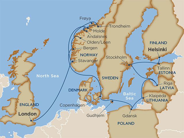Drift into fjords and past Baltic coastlines on a sailing across Northern Europe. Sip hot kaffe with waffles and relax amid the furnishings of a Norwegian family home . Ride mountain bikes from the crest of Mount Fløyen through an emerald forest to placid lakes and sweeping views of the city of Bergen. Step aboard turn-of-the-century mechanized rides and snack on decadent chocolate treats at Copenhagen's Tivoli Gardens--one of Europe's oldest amusement parks. Glide past Gdansk's thriving waterfront on a guided kayak tour. Indulge in smoked fish and Lithuanian beer with friendly Klaipeda locals. Walk around the ornate Swedish sailing ship Vasa in Stockholm, the oldest fully preserved ship in the world.