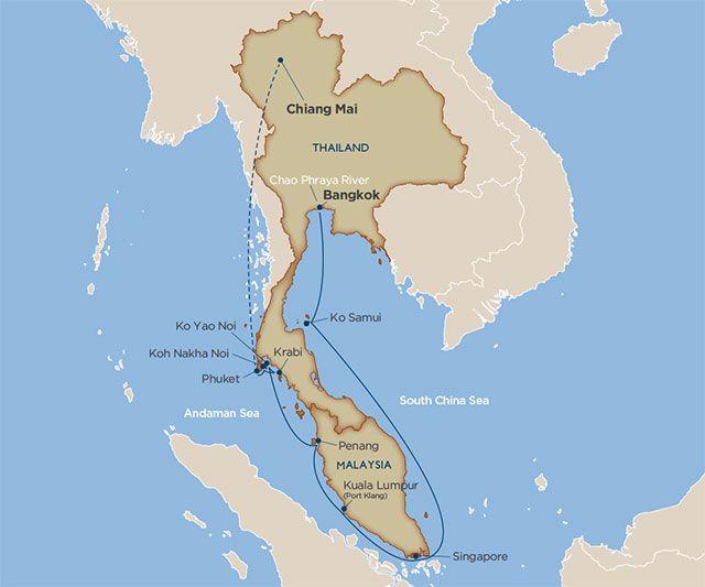 Enjoy Chiang Mai, nestled in the mountains of Northern Thailand with three luxurious nights at a 5-star hotel. Visit Wat Phra That Doi Suthep, a Buddhist temple with stunning views of the city. Savor Chiang Mai’s flavors on a walking food tour through Old Town and the lively Chiang Mai Night Market. Spend time at an elephant sanctuary, where you’ll help feed and bathe them. Enjoy lunch at an open-air orchid farm. In Bangkok, cruise the Chao Phraya River for stunning views of the skyline and floating markets, while Singapore and Penang offer a rich blend of Chinese and Malay cultures, with vibrant street food and unique architecture. Enjoy off-the-beaten-path islands like Piggy Island and Ang Thong National Marine Park for outdoor adventures and unwind with a spa day in Krabi.