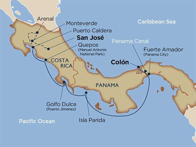 • 7-day cruise from Colón to Puerto Caldera or reverse
