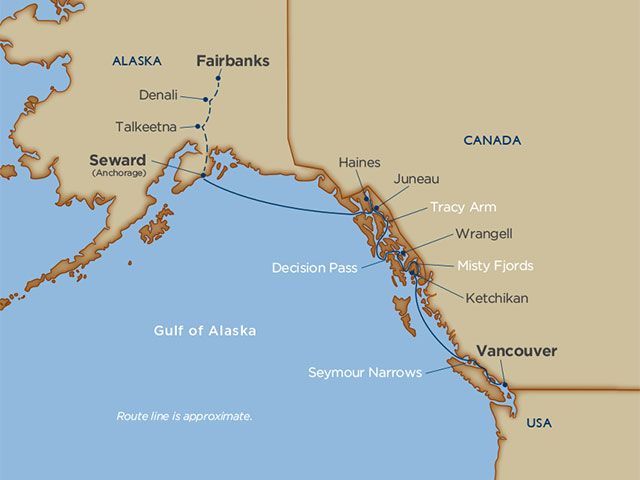 Be out on deck for scenic cruising of the beautiful Inside Passage between Anchorage and Vancouver looking for wildlife along the way.